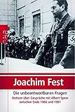 Joachim C. Fest. Die unbeantwortbaren Fragen: Notizen über Gespräche mit Albert Speer zwischen Ende 1966 und 1981. Reinbeck: Rowohlt Verlag, 2005. 270 S. (gebunden), ISBN 978-3-498-02114-6; (broschiert), ISBN 978-3-499-62159-8.