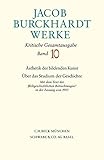 An der Edition der Manuskripte fällt gegenüber den ersten Veröffentlichungen aus dem Nachlaß vor allem auf, daß es eines der Anliegen der jetzigen Bearbeiter gewesen ist, den Text lesbarer zu gestalten, ohne damit seine ursprüngliche Gestalt zu verstellen. Burckhardt hat seine Vorlesungsvorbereitungen nicht in Form zusammenhängender Texte hinterlassen, sondern in ihnen seine Gedankengänge lediglich so weit zu Papier gebracht, daß sie ihm zur eigenen Übersicht und zum Erstellen von sogenannten "Memorierblättern" dienten. Vor der jeweiligen Kollegstunde lernte er diese auswendig und sprach dann vor den Studenten frei. Da er beide Vorlesungen in mehreren Semestern hielt, wurden seine Manuskripte zudem von ihm mehrfach überarbeitet, so daß die hinterlassenen Schriften eine Reihe von Einschüben, Randbemerkungen und Zusätzen enthalten. Vgl. zur Charakterisierung der Manuskripte Werner Kaegi, Jacob Burckhardt. Eine Biographie Bd. 6: Weltgeschichte - Mittelalter - Kunstgeschichte - Die letzten Jahre 1886-1897, Basel u. Stuttgart 1977, S. 7ff u. S. 307f. Zusammengenommen führte dieser Zustand der Handschriften dazu, daß das Bemühen um eine möglichst detailgetreue Wiedergabe die Schwierigkeit mit sich brachte, daß die Übersichtlichkeit des Textes unter der Menge an Absätzen und Fußnoten gelegentlich zu leiden hatte. Die neue Edition trägt dazu bei, diese Schwierigkeit, so weit es möglich war, zu verringern. Randbemerkungen und Zusätze sind in den Haupttext aufgenommen worden, wenn eine eindeutige Zuordnung ausgemacht werden konnte. Der textkritische Kommentar weist die Einfügungen im einzelnen nach und führt die durch Burckhardts Überarbeitungen entstandenen Streichungen auf. Wenn die erste Edition häufig mit jedem Satz eine neue Zeile beginnt, sind diese nun zu Passagen zusammengefaßt, die den Sinneinheiten des Manuskripts folgen. Vgl. die Allgemeinen Editionskriterien im editorischen Nachwort, in: JBW Bd. 10, hier S.663-664. Daneben sind auch Lesefehler der ersten Edition in der Neufassung korrigiert worden. Etwa "zum Sehen überhaupt" statt "zum Schönen überhaupt" oder "Medium der Bildung" statt "Studium der Bildung" zu Beginn der 'Aesthetik der bildenden Kunst'. Insgesamt tragen die Veränderungen durchaus dazu bei, daß die Gedankengänge Burckhardts klarer verfolgt werden können als zuvor. Eine neue Lektüre lohnt sich.