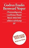 Gudrun Ensslin, Bernward Vesper. "Notstandsgesetze von Deiner Hand": Briefe 1968/1969. Herausgegeben von Harmsen, Caroline / Seyer, Ulrike / Ullmaier, Johannes. Mit einer Nachbemerkung von Ensslin, Felix. Frankfurt am Main: Suhrkamp Verlag, 2009. 289 S. ISBN 978-3-518-12586-1.